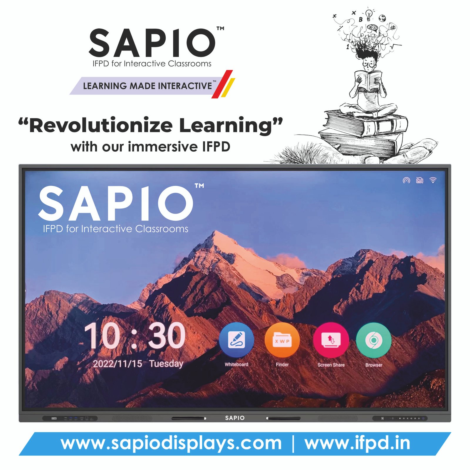 SAPIO manufacture smart class range of products – Interactive Flat Panel, Touch board Optical (Size from 36 to 100 Diagonal), IR in size 82 & 93 diagonal, Ceramic or Resin nano steel surface, Frame colour option as per Customer choice, OEM service available, constant upgradable whiteboard software support in Windows, Android & Ubuntu, Digital teaching content, Service & Spares available.